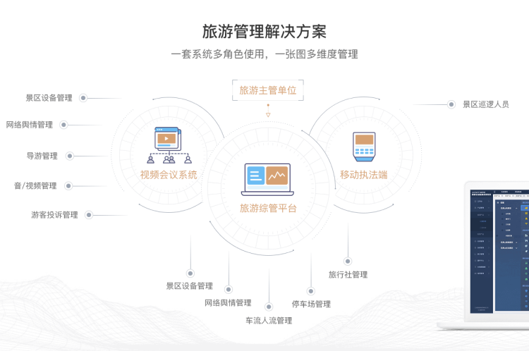 路通物聯是路通視信旗下專注智慧全域旅游領域的技術研發(fā)和落地運營公司。是擁有核心技術和自主知識產權并全面落地實施的 智慧全域旅游綜合解決方案供應商。多年來,公司立足市場和國策,依托互聯網、物聯網、大數據、云計算等新興技術,秉承“自 主研發(fā)、落地至上”的開發(fā)理念完成了“1+3+N”的產品構架,并長期為各省、市、區(qū)縣旅游局,旅發(fā)委、運營商、集成商提供優(yōu)質服務。